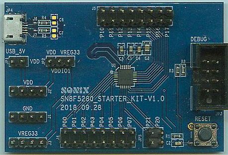 配合SN-LINK-V3可以直接进行SN8F5282/5283 MCU程序开发。该Kit已将所有功能的I/O都拉出来供给使用者应。