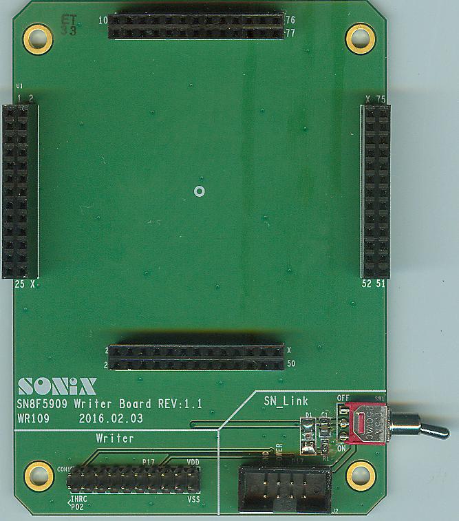 1. IC脚位小于或等于48pin者: 使用MP5-Writer烧录MCU时,将相对应MCU型号的Writer Transition Board安插于MP5-Writer上,再将MCU放置于MP5-Writer上的Text Tool即可烧录。