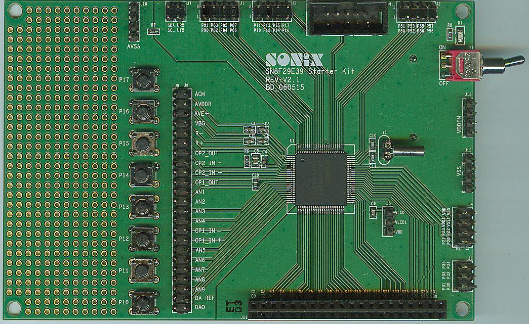 配合SN-LINK-V3可以直接进行29E39 MCU程序开发。该Kit已将所有功能的I/O都拉出来供给使用者应。