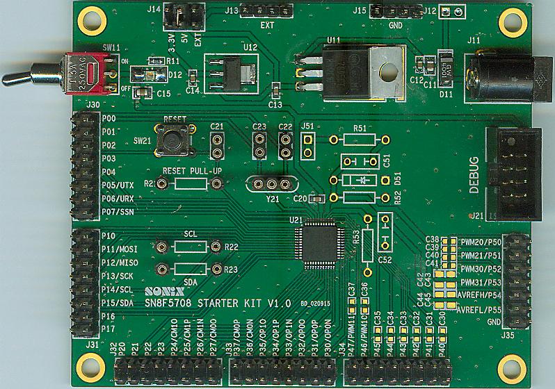 配合SN-LINK-V3可以直接进行SN8F5708 MCU程序开发。该Kit已将所有功能的I/O都拉出来供给使用者应。
