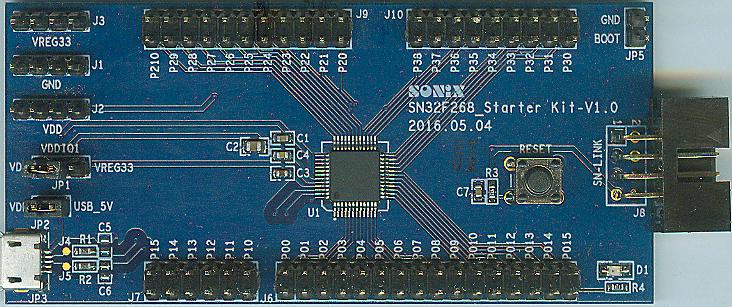 配合SN-LINK-V3 可以直接进行SN32F260 series MCU程序开发。该Kit已将所有功能的I/O都拉出来供给使用者应用。