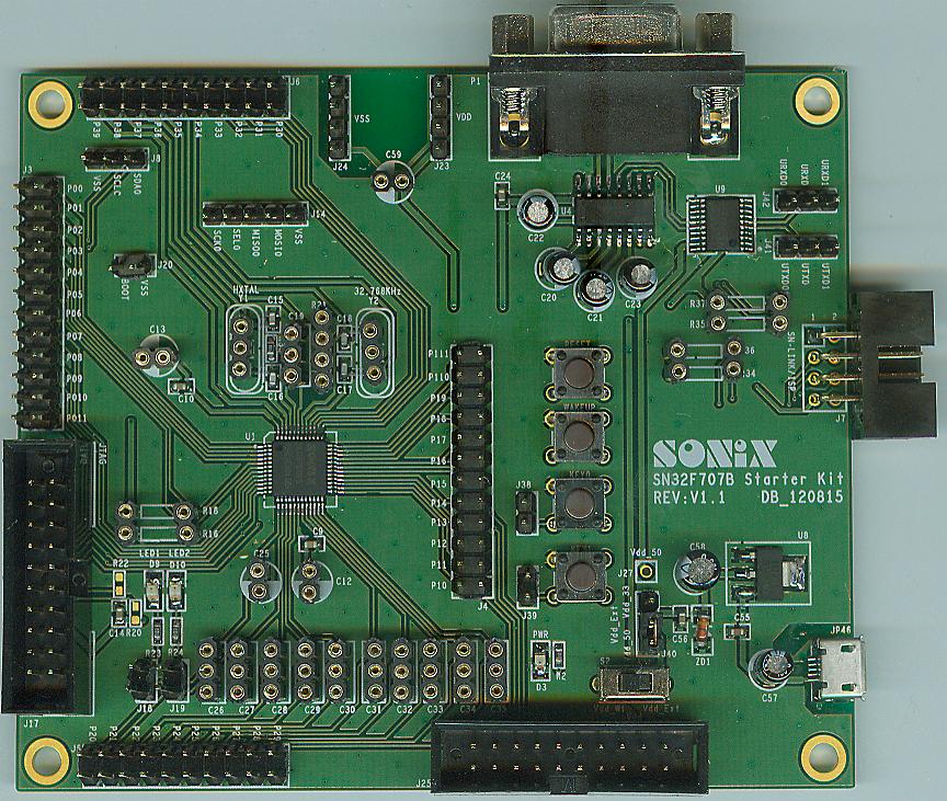 配合SN-LINK-V3可以直接进行SN32F805 MCU程序开发。该Kit已将所有功能的I/O都拉出来供给用户应用。