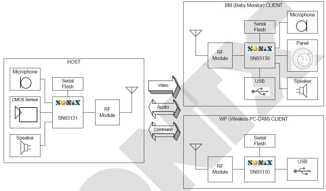 Sonix SN93100 series is a 2.4GHz wireless multi-media processor that target on wireless