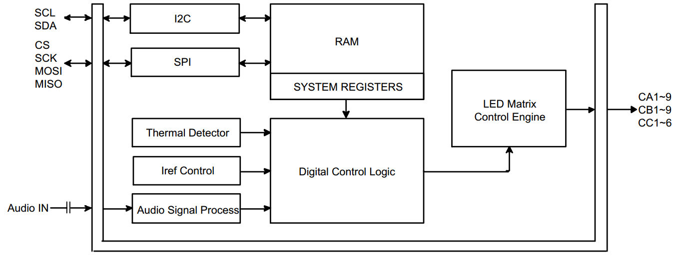 SLED1735 series have four types of built-in LED matrix. The chip can drive up to 256 LED lights and 75 RGB LED lights. In the LED matrix of SLED1735 series, each LED has on / off, blinking, breathing light and audio input, automatic synchronization and many other functions. The PWM (pulse width modulation) technology incorporated in the chip can provide 256-level brightness adjustment and it also equipped with 16-level dot correction function. In addition, SLED1735 also supports automatic detection technology and two stage of temperature detectors.SLED1735 series with the features of multi-channel, constant current and PWM. The SLED1735 provides per channel constant current range from 8mA to 40mA, and the output current channel can be adjusted through the 64-level internal register. The series also supports 2.7V to 5V power supply system and the sink current is up to 320mA per output channel.