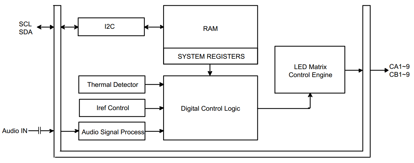 SLED1732 series have four types of built-in LED matrix. The chip can drive up to 256 LED lights and 75 RGB LED lights. In the LED matrix of SLED1732 series, each LED has on / off, blinking, breathing light and audio input, automatic synchronization and many other functions. The PWM (pulse width modulation) technology incorporated in the chip can provide 256-level brightness adjustment and it also equipped with 16-level dot correction function. In addition, SLED1732 also supports automatic detection technology and two stage of temperature detectors.
