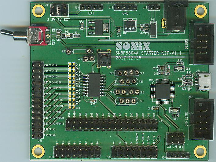 Assort with SN-LINK-V3 and support emulate SN8F5804 MCU. This Kit can provide the I/O ports for function test and other applications of users.