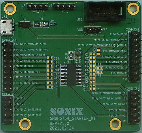 Assort with SN-LINK-V3 and support emulate SN8F5754 MCU. This Kit can provide the I/O ports for function test and other applications of users.