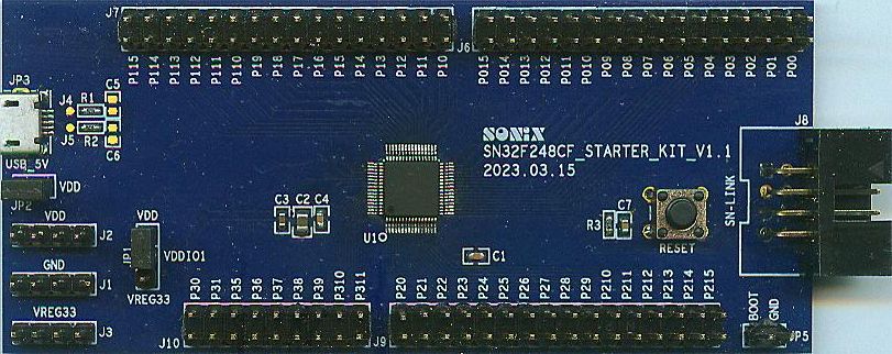 Assort with SN-LINK-V3 and support emulate SN32F248C series MCU.This Kit can provide the I/O ports for function test and other applications of users.