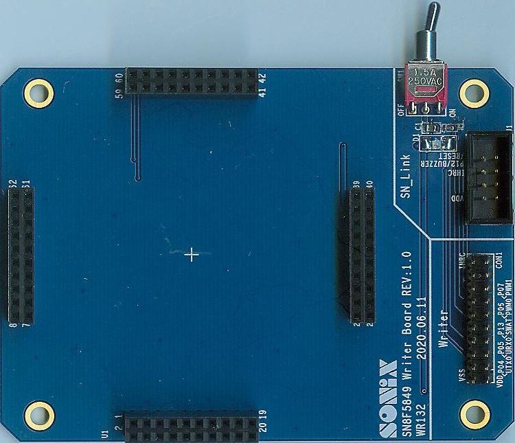 1. Not more than 48pins: If choose MP5 Writer, plug the corresponding Writer Transition Board intoMP5 Writer, then place MCU on the Text Tool of MP5 Writer. Now it's ready for programming.