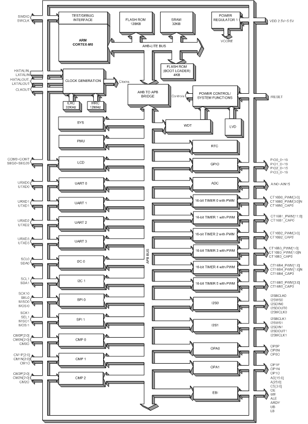 SN32F780 series 32-bit micro-controller is a new series of extremely Low Power Consumption and High Performance MCU powered by ARM Cortex-M0 processor with Flash ROM architecture. SN32F780 series MCU is high performance and wide operating range (2.5V~5.5V, 72 MHz maximum frequency). The device is designed with the excellent IC structure including the program memory up to 128KB Flash ROM, data memory of 32KB RAM, Nested Vectored Interrupt Controller (NVIC), six 16-bit timers, I2C, SPI, UART, I2S , EBI interfaces, 4x40/6x38/7x37/6x36 LCD drive, 16+3-channel 12-bit SAR ADC, three comparators, two OP amplifiers, 24 capacitive touch keys, CRC, and flexible operating modes. There are several system clock sources, including internal 12MHz RC oscillator, internal 32KHz RC oscillator, external High Speed crystal, external Low Speed crystal, and PLL. Under Flash ROM platform, SN32F780 series MCU builds in in-system-programming (ISP) function extending to EEPROM emulation. Powerful functionality, high reliability and low power consumption can apply to battery level application easily.