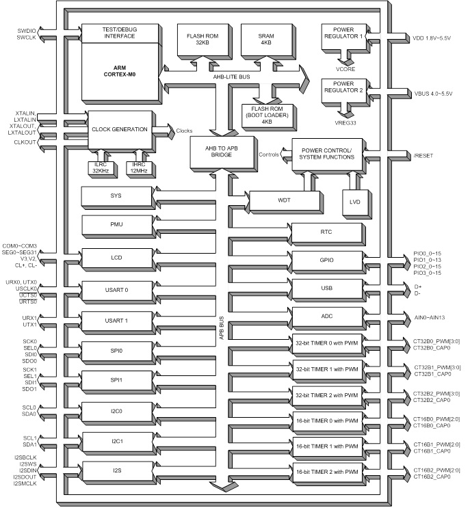 including internal 12MHz RC oscillator, internal 32KHz RC oscillator, external High