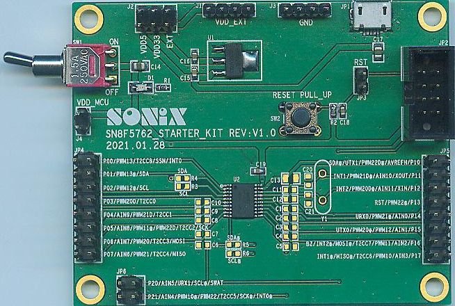 Assort with SN-LINK-V3 and support emulate SN8F5762 MCU. This Kit can provide the I/O ports for function test and other applications of users.