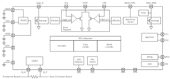 The SNPD1740 Series is a highly integrated USB Type-C port controller that complies with the latest USB Type-C and Power Delivery (PD) standards. With SONiX’s proprietary 8051 technology, the SNPD1740 Series consists of an 8-bit 8051 processor, a 16 KB on-chip flash programming memory, a complete Type-C USB-PD transceiver, an integrated feedback control circuit for voltage (VBUS) regulation, and all termination resistors required for a Type-C port. Featuring multiple I/Os, well-integrated BOM, and system-level ESD protection, the SNPD1740 Series is well-suited for power adapter applications.