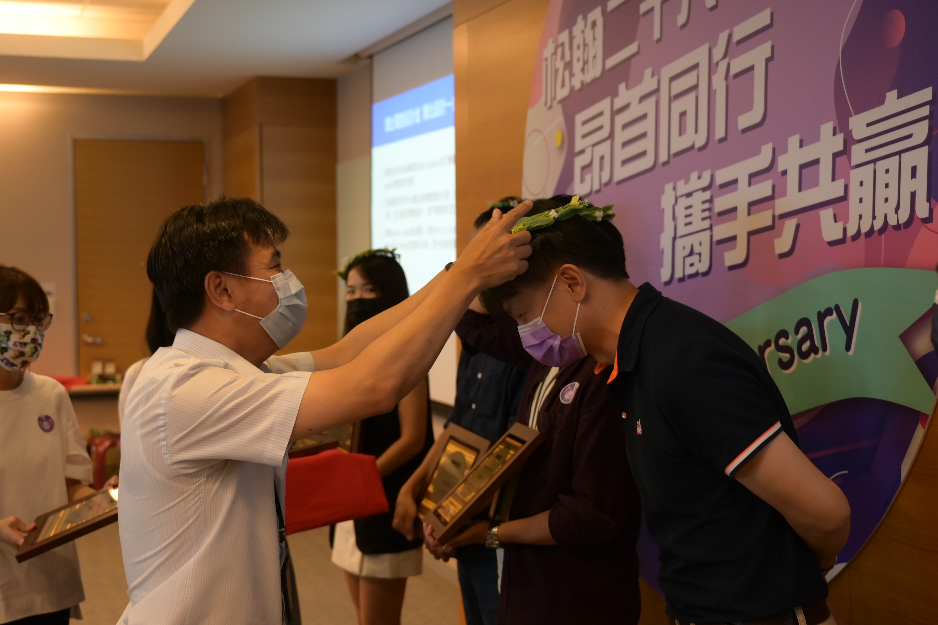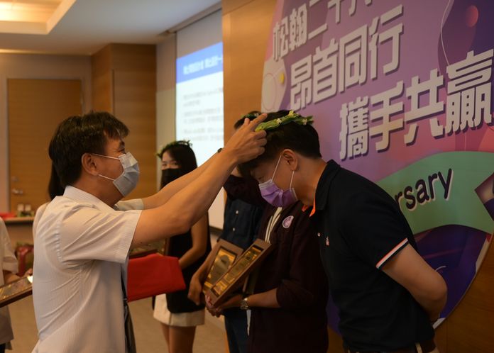 總經理為年度優秀員工戴上桂冠,頒發獎牌