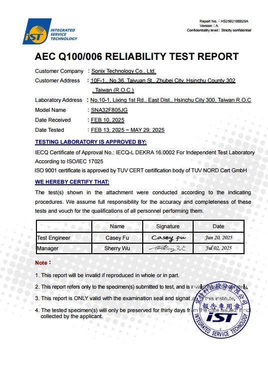 SNA32F805JG series in the same year. The SNA32F805JG has passed AEC-Q100 Grade 1 certification,