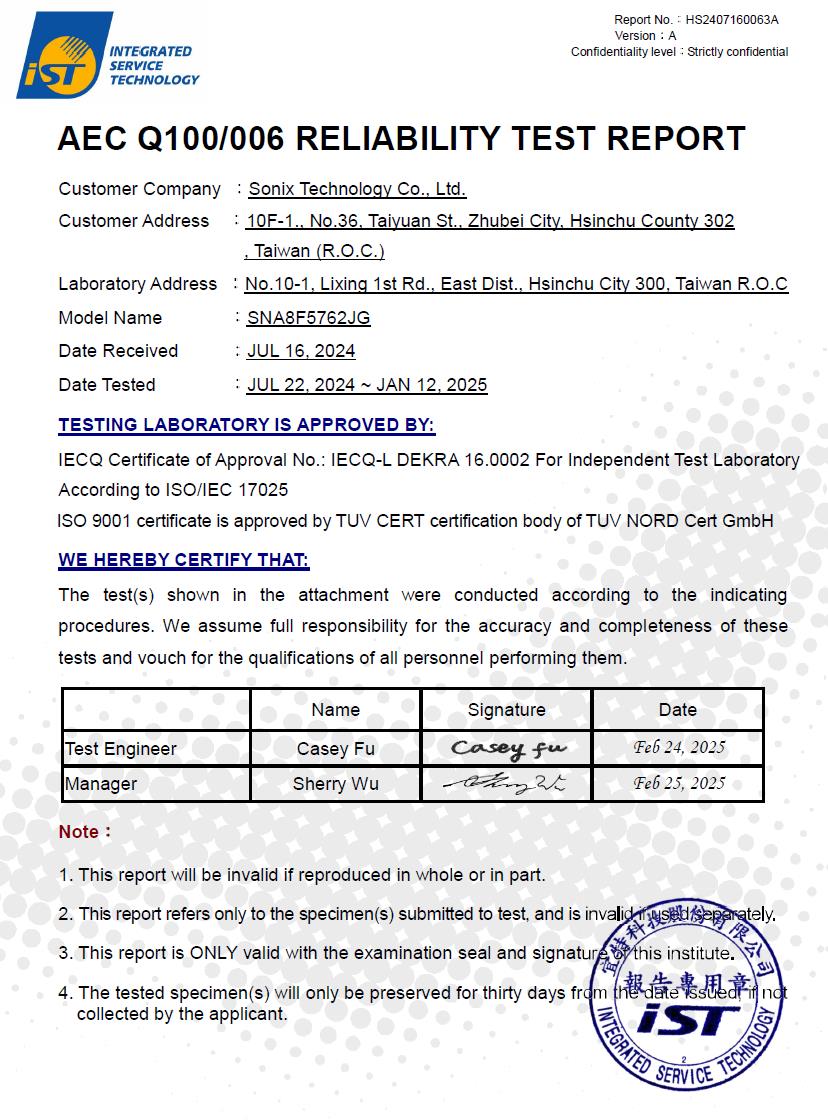 Sonix Technology SN32 Series Achieves UL/IEC 60730-1 Class B Software Certification